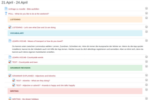 Die zweite Hürde bestand in der Schulung des Kollegiums, denn für fast alle war moodle ebenfalls “Neuland”. Hierzu haben wir Anleitungen und Beispiel-moodle-Kurse zum Selbstlernen für Lehrkräfte erstellt, Videokonferenzen als Online-Fortbildung angeboten und unzählige telefonische oder Face-to-Face Beratungen durchgeführt - letztere natürlich immer mit dem vorgeschriebenen Abstand. Jede Stufe kann nun auf einen oder mehrere MultiplikatorInnen zurückgreifen, die zusätzlich jeder Lehrkraft beim Aufbau ihrer moodle-Kurse helfen.